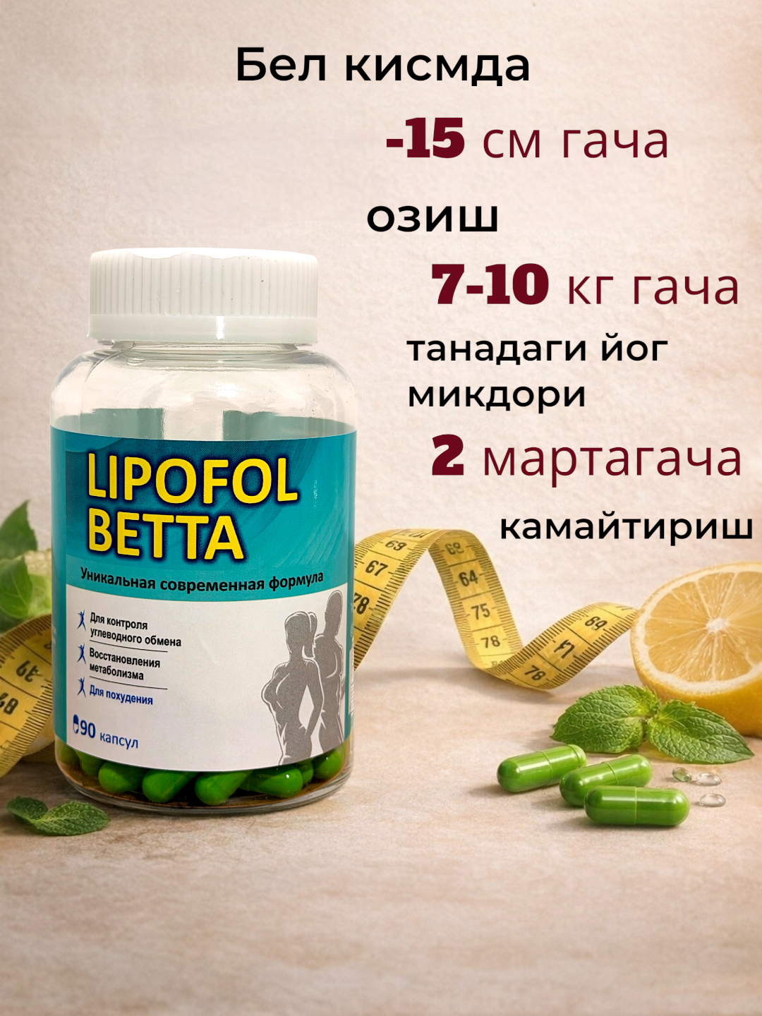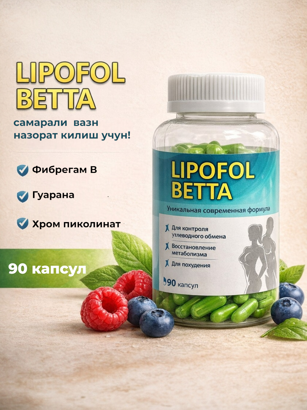 🔥 Lipofol Betta yog‘larni yo‘q qilishga, ishtahani bosishga va tanani tezroq shaklga keltirishga yordam beradi.